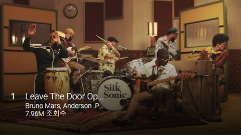 19위 브루노 마스 "Leave The Door Open" 796만 조회수