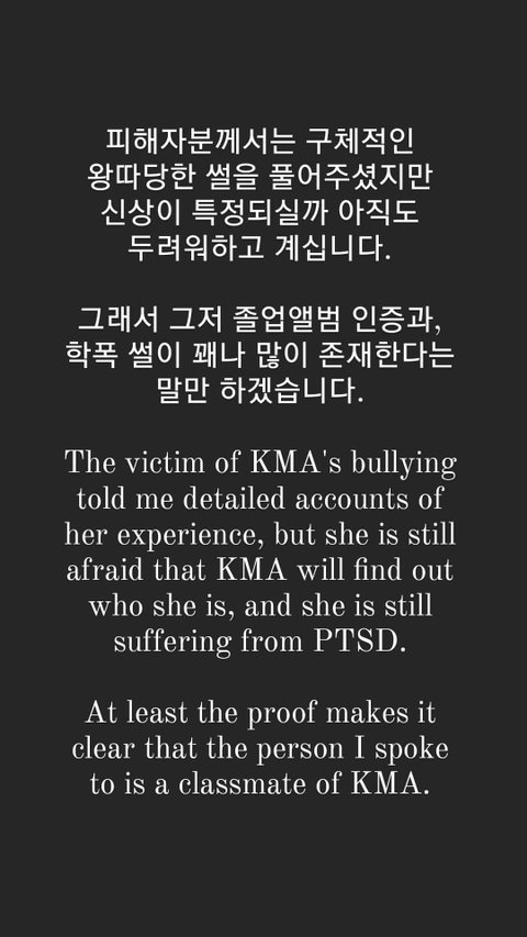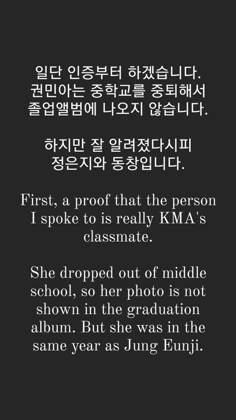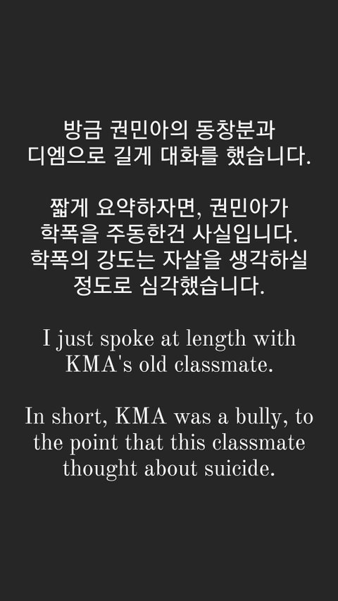 주요 주제는 민아가 중학교를 중퇴하기 전에 왕따 가해자였다고 그랬어는데 자세히 내용을 올리지 않았어요