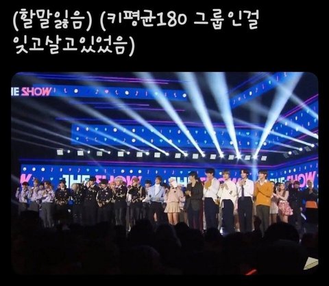 자기들끼리 있으면 키 큰지 모르는데 다른사람들이랑 있으면 확티나 ㅋㅋㅋㅋㅋㅋㅋㅋ 엠카 엠씨분이 187임