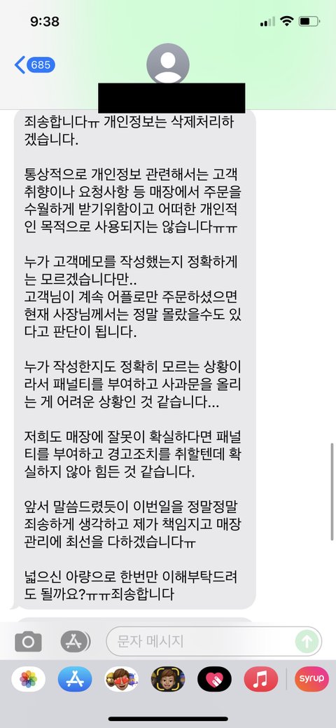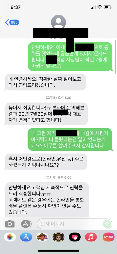 새로 인수받은 사장님께서 작성한건 아니지만 죄송하다고 했다. 혹시 원하는게 있느냐.