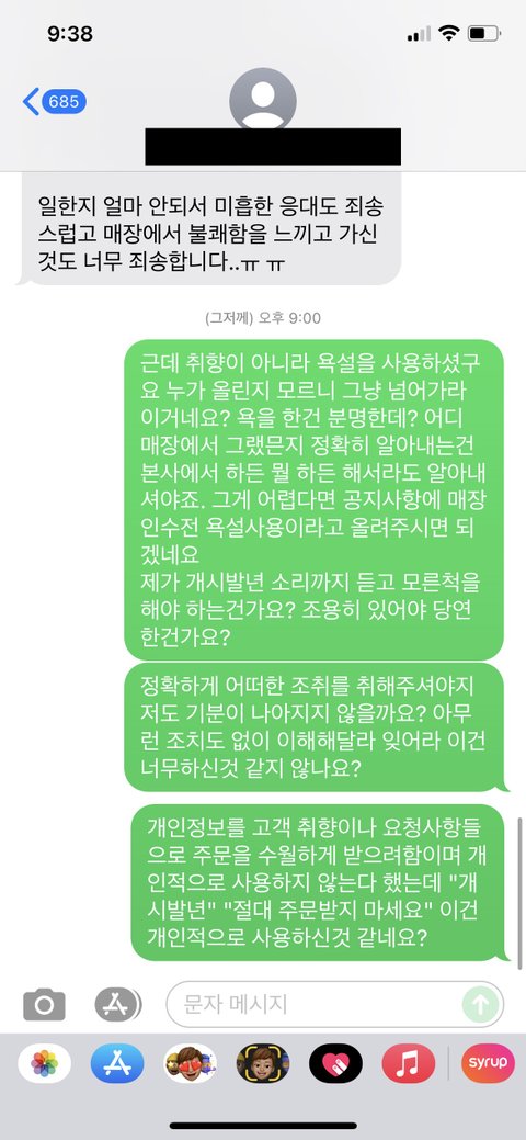 아 이게 맞구나 생각을 했고 "개신발년이라니, 너무하시네요. 주문 안할게요." 라고 얘기하고 나왔습니다.