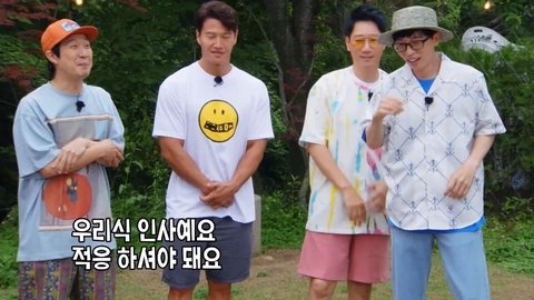 지석진 : 어우~ 안녕하쉐요~ 실물 처음 봐요~`