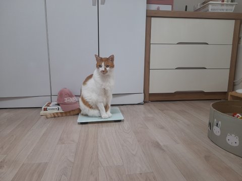 맨날 저렇게 체중계에 올라가 있어서 체중계 고장난것 같음.