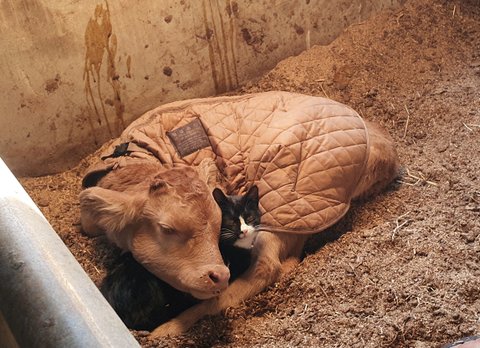 지난 겨울 송아지 품에 안겨자고 송아지한테 꾹꾹이하던 고양이 치타 기억하시나요?