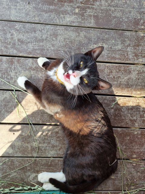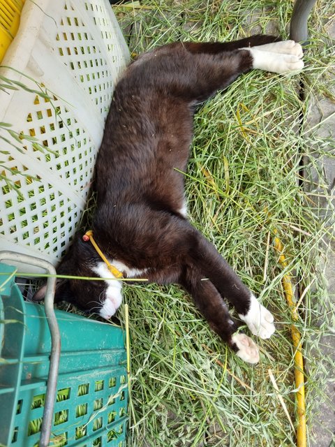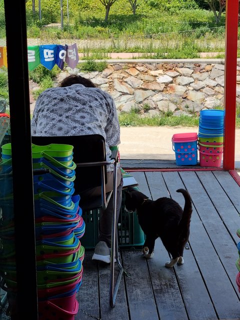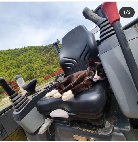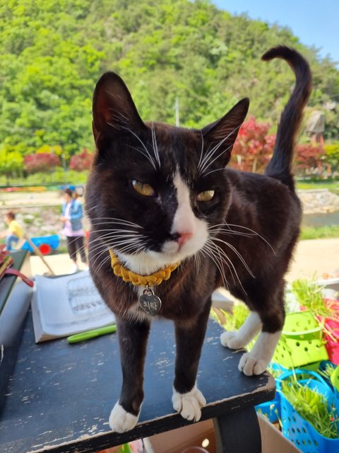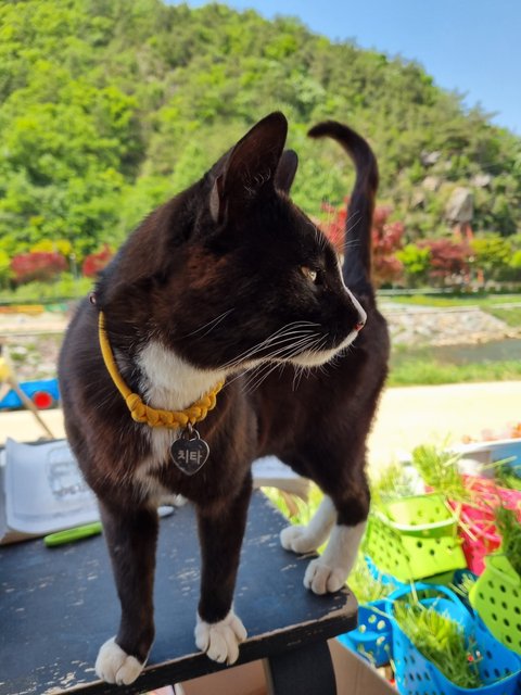 첨에 목장에 나타났을 땐 진짜 작은 아기냥이었는데 잘 먹고 잘 자라 윤기가 흐르는 성묘가 되었어요