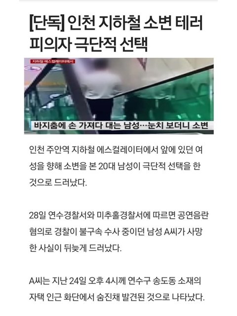 지하철 소변테러범 자살했대