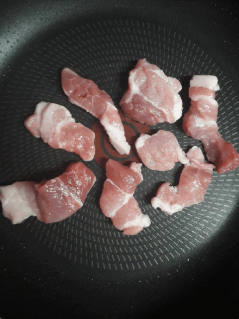 고기는 생으로 잘라서 볶아도 되는데 나는 귀찮아서 겉에만 조금 익혀서 가위로 잘게 잘라줬어
