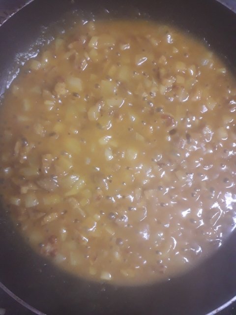 감자가 어느 정도 익었다 싶으면 양파를 넣고 볶아준다