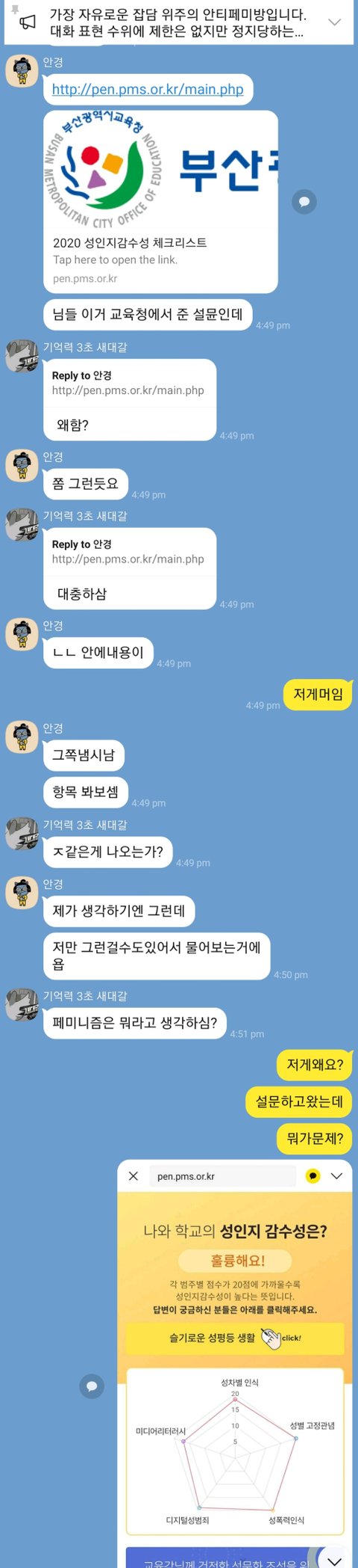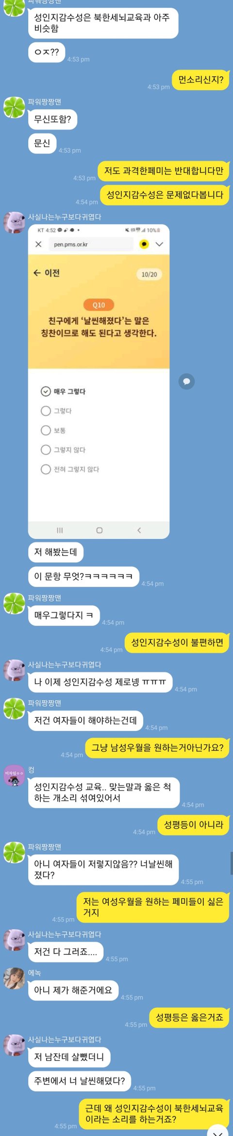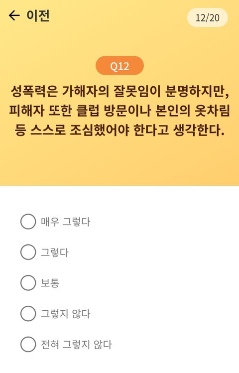 성인지감수성 설문 저거 함 해봤는데 문제되는 항목 하나도 없던게 불-편해하고있음