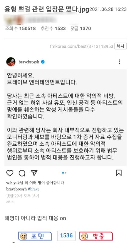 ㅋㅋ누가봐도 용형이 정상적인 대처한거 아니냨ㅋㅋ 하여튼 gs bbq가 비위 맞춰주니까 지들이 떼쓰면 다 되는줄 알음... 그럼 오조억 썼다고 유나랑 소속사가 사과할줄 알았나ㅋㅋㅋ