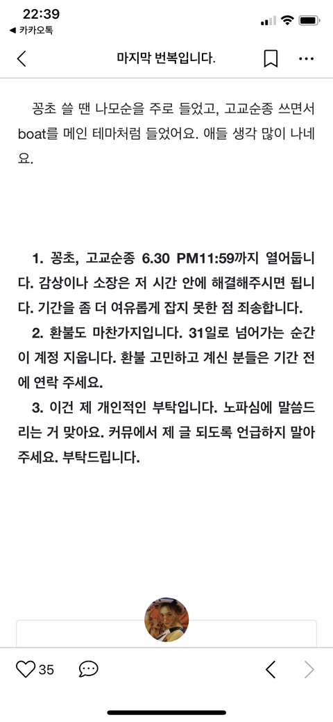 고교순종 꽁초 작가 글 올라옴