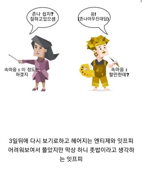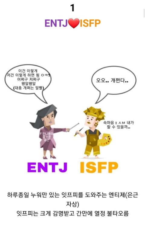 엄마는 돌아가셔서 안계시고 아빠랑 여동생이랑 사는데 주말에는 다같이 역할 나눠서 집 대청소 하거든? 근데 나 entj 동생 esfp 아빠 isfp 이건데 항상 역할 분담은 내가 먼저 정하고 아빠랑 동생한테 시키는데 동생은 그래도 놀면서라도 하거든? 근데 아빠는 ㄹㅇ 처음에 역할주면 대답은 함 "그래 그래" 이러는데 내가 청소하다가 중간에 와보면 앉아서 폰보고 있음ㅋㅎㅋㅎㅋㅎㅋ 그래서 내가 뭐라하면 "어어 해야지" 이러고 옆에서 동생은 "오 아빠 유튜브로 뭐봐?" ㅇㅈㄹㅋㅋㅋㅋ 다시 와보면 이젠 누워서 폰보고 있음 ㅋㅋㅋㅋㅋㅋㅋㅋㅋㅋ 그래서 내가 좀 슬슬 짜증낼려고 하면 한 5분뒤에 일어나서 천천히 하다가 끝내면 다시 눕고 매주 이게 무한반복임 하기 싫다고는 절대 안하심 걍 싫은소리를 안함 그리고 대화해보면 진짜 잇프피 그자체임 암튼 졸라 과몰입했는데 mbti는 ㄹㅇ 과학이다 짤은 이해하기 쉬우라고 가져옴 ㅎㅎ