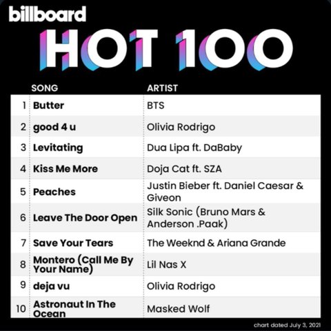 5주연속 빌보드 핫백 1위라니ㅠㅠㅠㅠ