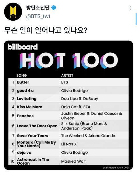아시아 가수 최초 5주연속 빌보드 정상 지킨