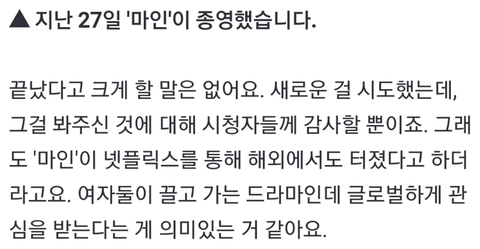 지난 27일 종영한 드라마 <마인> 백미경 작가