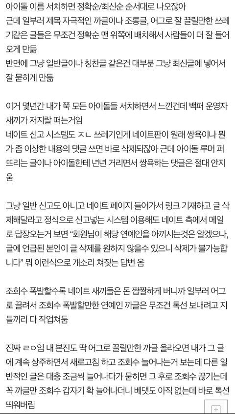 윈터팬들 악플러 피뎁따거나 슴에 메일 보낼때 네이트판 편파운영에 대해서도 같이 신고해 이건 안티련이 날뛰는것보다 더 심각한거야 네이트판이 연예인 이미지훼손 명예훼손에 앞장서고 방치하고 악플러 판깔아주면서 결국 판 이미지까지 하락시킴