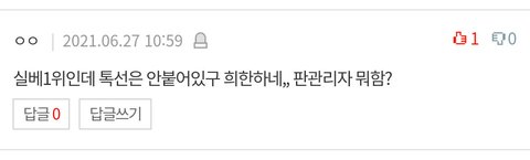 이틀전쯤 엔톡에 팬이 올린 "윈터 기사사진 레전드" 엔터톡 실베 1위에 있었고 베댓 추천수 다 괜찮았는데 반나절도 안된것을(원래 하루 24시간 지나야 내려오는거 알지?)