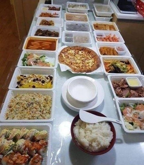 1. 직접 만든 음식이 아니라 배달 주문시킨 음식임 2. 그 음식을 접시에 셋팅하지 않고 배달온 그대로 펼쳐 놓음 3. 덜어 먹을 개인 접시가 플라스틱임