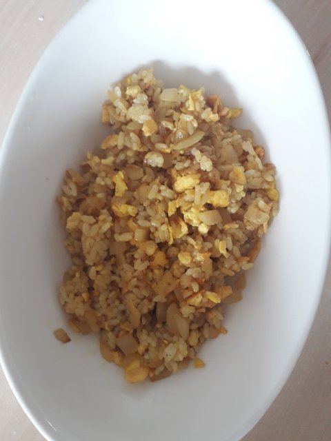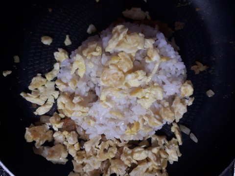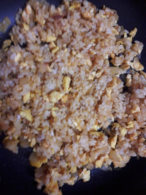 양파와 그 소스를 다 볶았으면 불을 끄고 아까 볶아뒀던 달걀이랑 밥 한공기를 넣고 섞는다