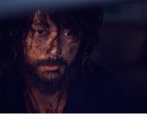 덥수룩한 머리에 피투성이 얼굴을 하고 있어서