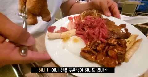 매니저가 가져 온 접시엔 푸른 색(야채)이 없고...
