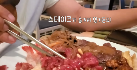 는 사실 육회 사이에 스테이크가 숨겨져 있기 때문!ㅋㅋㅋ
