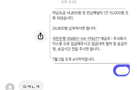 근데 얘가 결제를 안하고 미납을 한거임ㅋㅋ