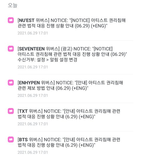 하이브 고소공지 다 같이 한번에 뜸 ㅋㅋㅋ