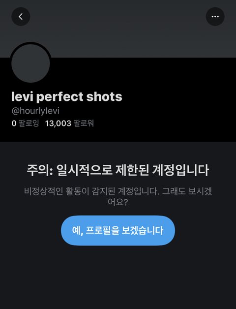 리바이 공식 사진 올리는 계정, 진격거 사진 올리는 계정 왜 제한 됐다고 뜨지?ㅠㅠ