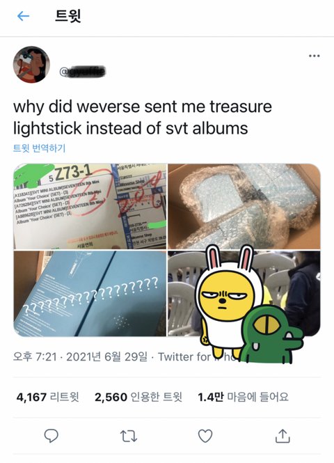 사진보면 어떤분이 ㅅㅂㅌ분들 앨범을 샀는데 열어보니 우리 응원봉이 나온 어이없는 상황ㅠㅠ