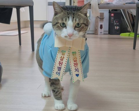 목에 리본화환도 달고^^ 꼬깔못한게 아쉽ㅠ