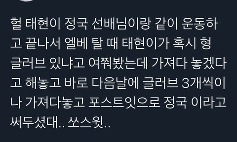 태현이 부탁을 바로 담날 잊지않고 챙겨주신 정국 선배님.. 사랑해요