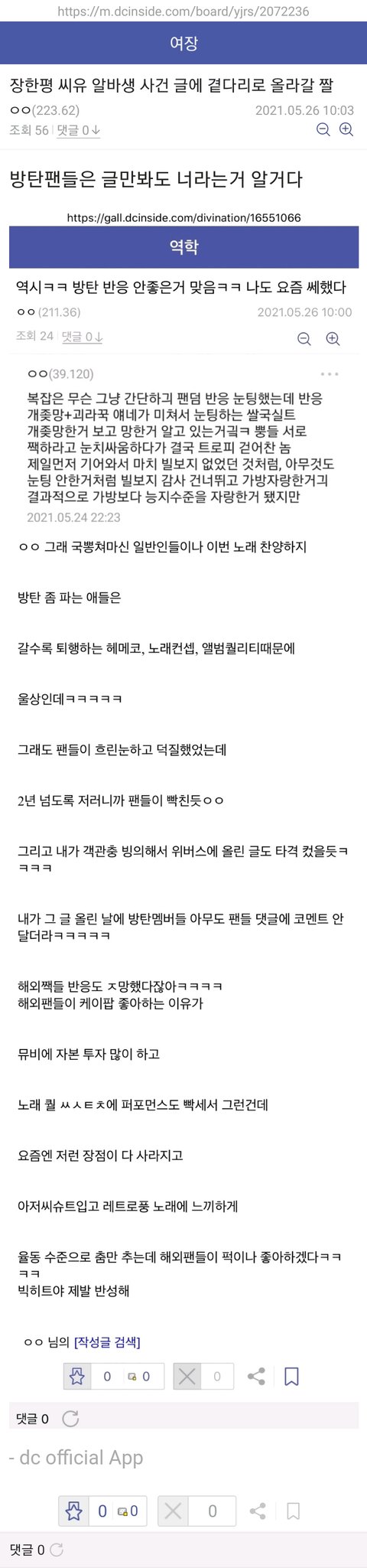 방탄 빌보드5주연속1위에 얼마나배아팠을까