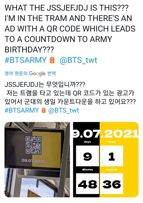 스웨덴 트램에있는 큐알인식하면 컴백일(아미생일) 카운트히는중이래 이게 머시여..아미피디아생각나 근데 나는 포기 했었지..
