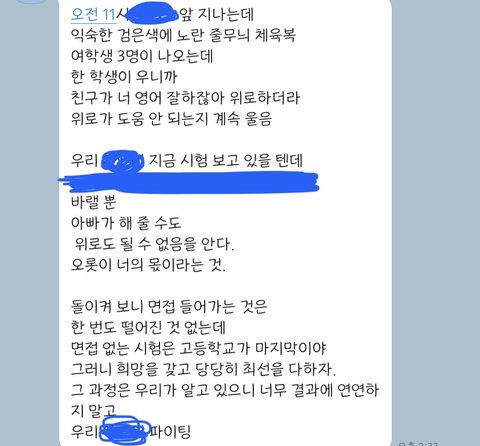 오늘 시험끝난 고딩인데 셤끝나고 폰 켜니까 이거 와있음 ㅠㅠ