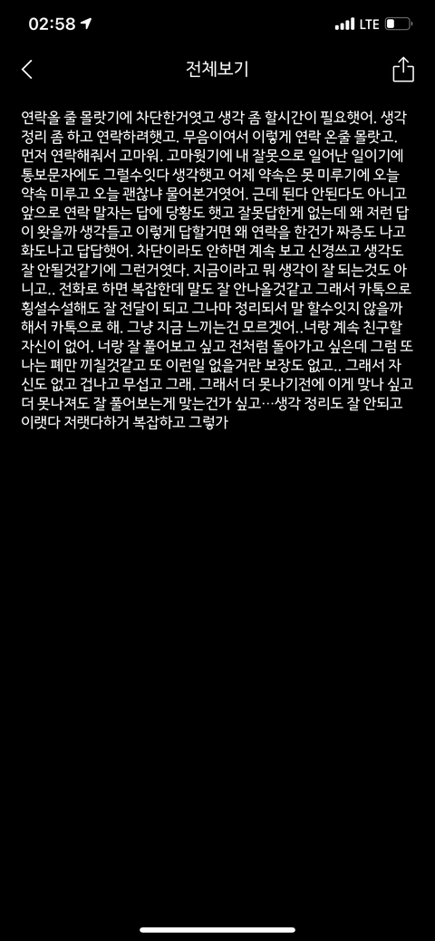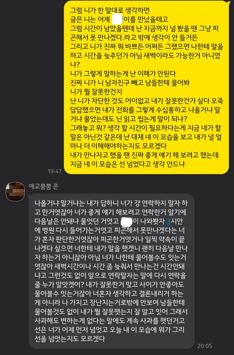 라고 했고 그 말을 들은 저는 그냥 연락하지 말자. 라고 했습니다