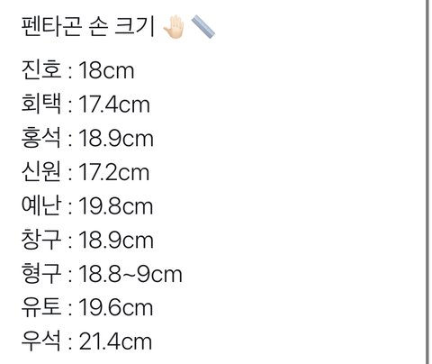 울 애들 손 크기 라는데