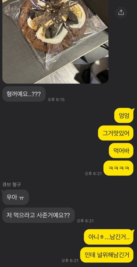 적당히 귀여워야지 쿠키 사다줬다고 우아래 진짜 내가 맨날 열개씩 사주고 싶어 아 오