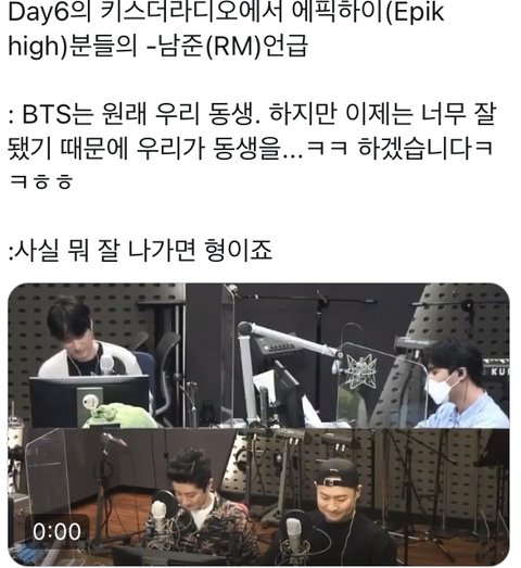 에픿하이분들 라디오에서 방탄 언급하셨더라ㅋㅋ