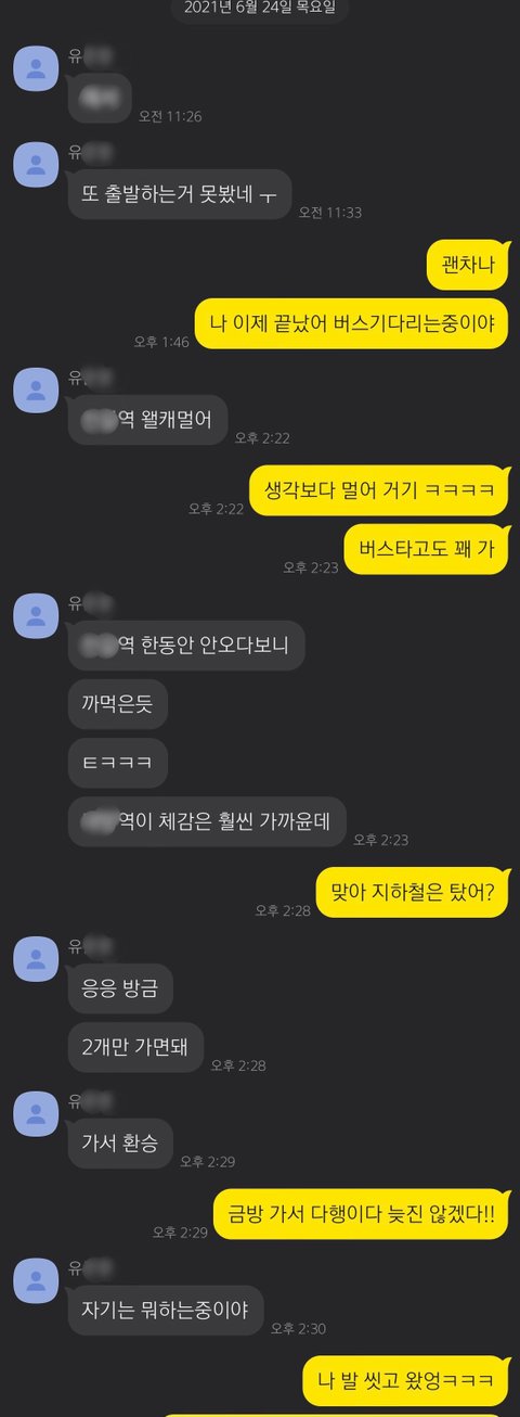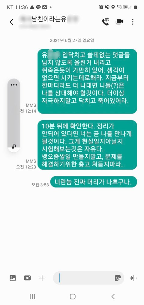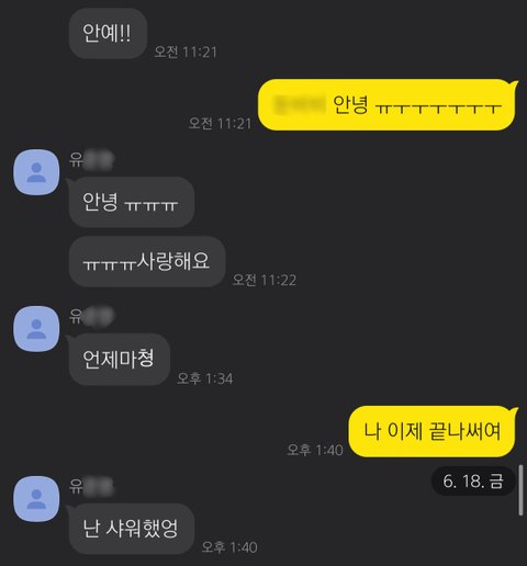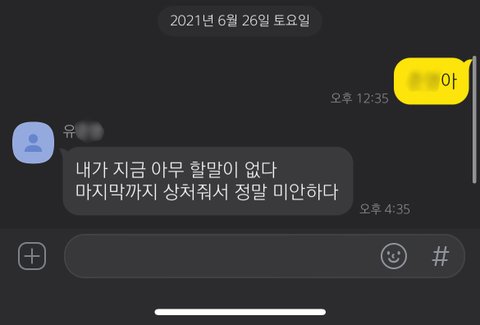 유씨 친구와 나눈 대화는 그대로 기록이 남아 있지만, 유씨 친구는 이 일과 직접적으로 관련된 사람이 아니고, 공개 동의 역시 아직 구하지 않았기에 공개하지 못하는 점 양해 부탁드립니다.
