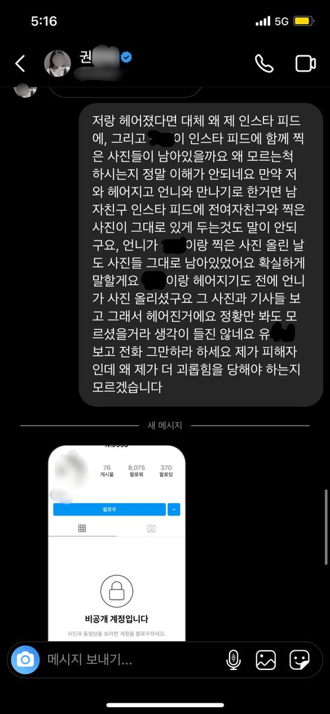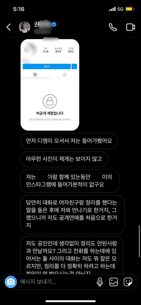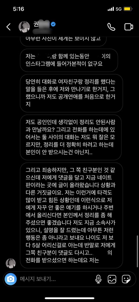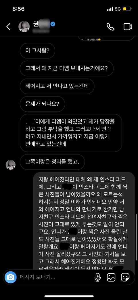 인스타그램에 제가 일방적으로 많은 연락을 무시하고 있는 뉘앙스로 글을 쓰셨던데, 저는 모든 통화 기록과 DM 내용, 카톡 내용을 단 하나도 삭제하지 않고 가지고 있습니다.