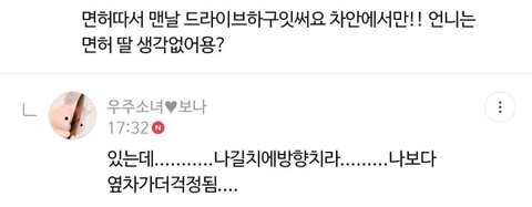 계속해서 운전면허는 언제 딸 것인가 궁금했는데