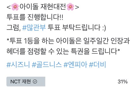 https://twitter.com/idol_allday/status/1410790982329638913?s=21 남돌 제혅즈 투표하는데 우리 제혅이한테 한 표만... 지금 지고있음