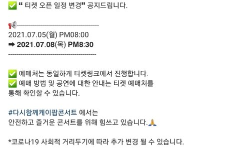 케이팝 콘서트 티켓 오픈 일정 변경