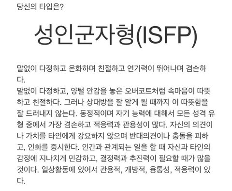 물론 어떤 사람들은 이글을 보고 나한테 mbti 과몰입이라고 욕할 수도 있다.