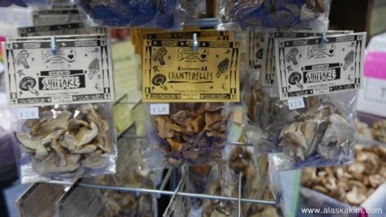 싱싱한 표고버섯을 따서 매주 벌어지는 농부시장에서 팔고