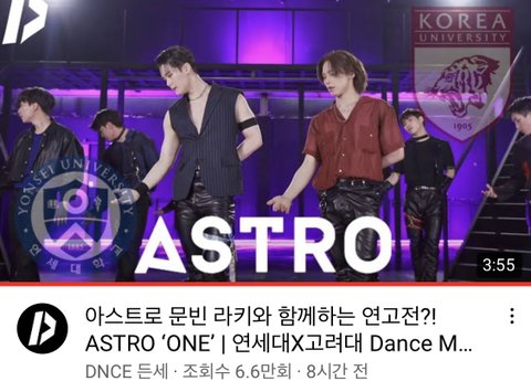 유튭 알고리즘에 뜬 거 같은데, DNCE? 뭔지 모르겠고, 연고전 영상에 아스트로 본인등판 했는데? ㅋㅋㅋㅋㅋㅋㅋ