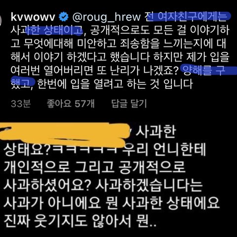 (여친있는거 뻔히 알면서 계속 톡보냈다는 소릴 자기 변호하겠답시고 꺼내는게 진짜 능지딸리는것같음ㅋ)