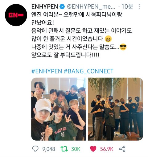 방시혁이랑 엔하이픈이랑 만났대