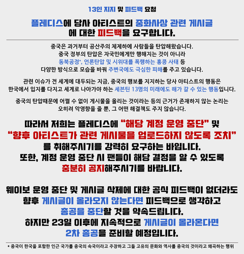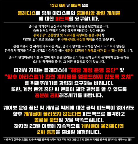 ❗팬덤의 강력한 의견 피력을 하기 위함입니다 ❗